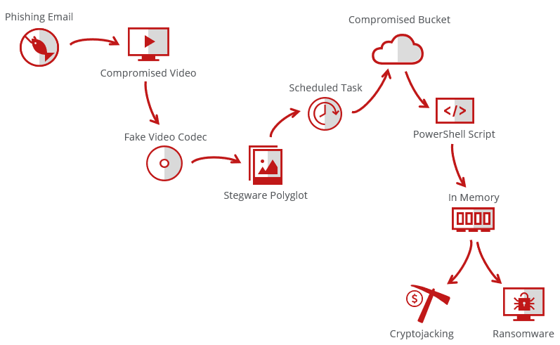 The attack raises many questions: What are you dealing with? Is it phishing 2.0? Is it stegware? Is it fileless and “living off the land”? Cryptojacking? Ransomware? It is everything at the same time.